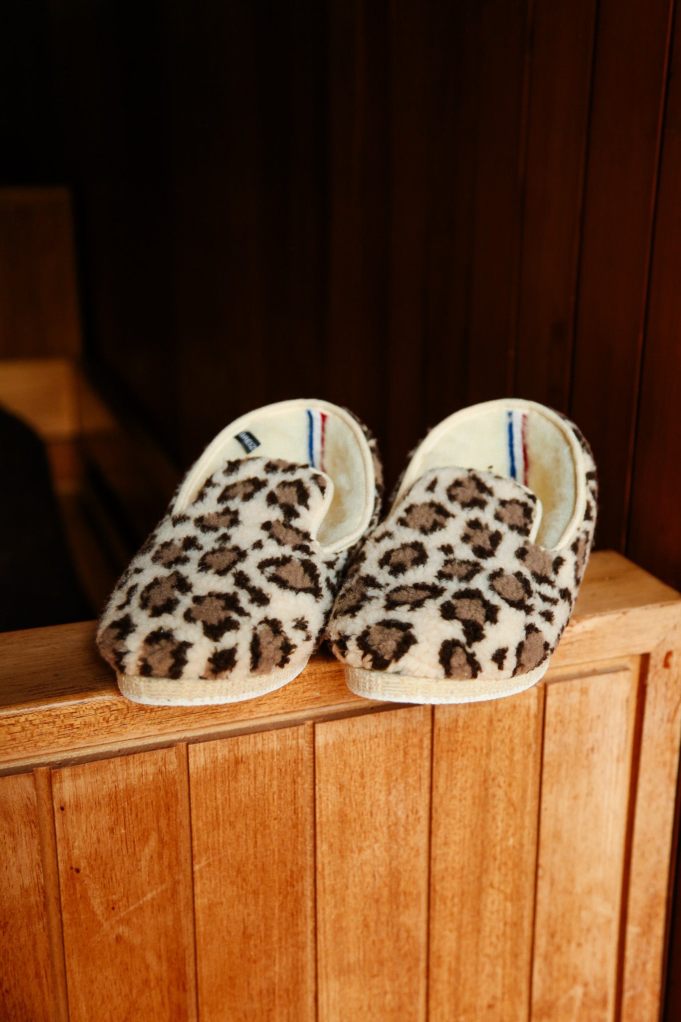 Paire de chaussons charentaises femme "Kerema" bouclette léopard